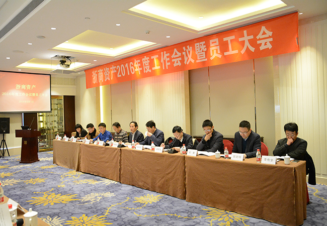2016年2月1日下午,浙商資產于杭州索菲特大酒店召開2016年度工作會議暨員工大會,公司本級全體員工及部分子公司員工到會參加。