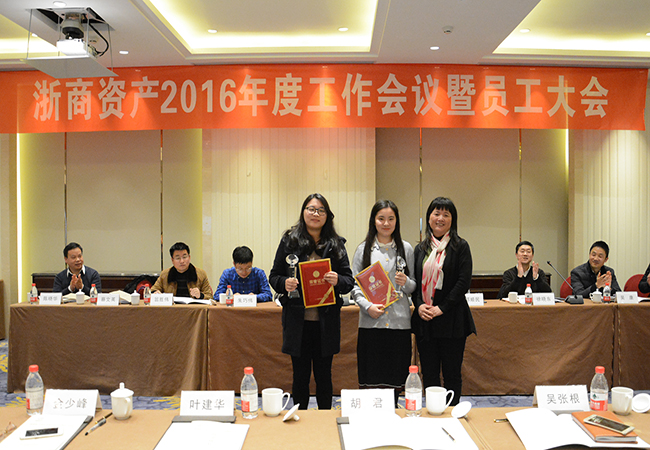 會議第二項議程為表彰年度先進集體及先進個人,杭州業(yè)務三部、法律合規(guī)部獲得了先進集體的榮譽,錢烈、毛倩瑩、翟峰等獲得了先進個人的榮譽。