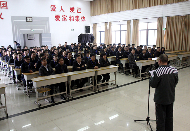 接著,全體參觀人員參加了現(xiàn)場廉政警示教育會。整個(gè)警示教育會分三部分。第一部分由教改科教員簡單介紹二監(jiān)的歷史,并且播放了二監(jiān)的宣傳教育片,讓我們更加立體及全面的了解二監(jiān)在新時(shí)期建立的“健康+”特色管理模式。