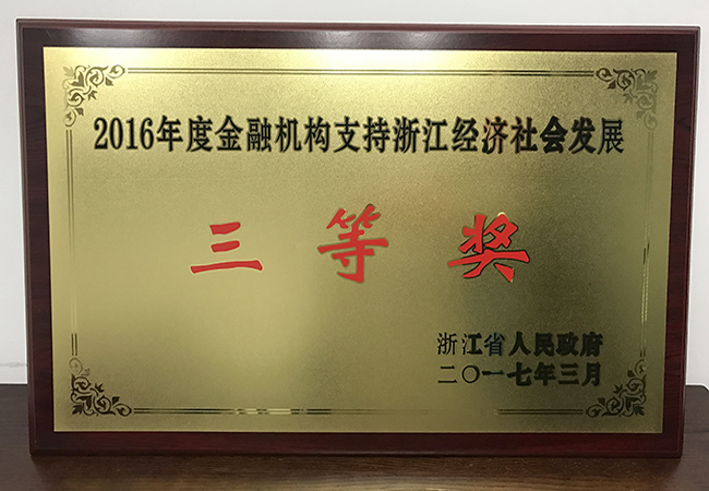 2017年3月,浙商資產榮獲浙江省人民政府頒發的2016年度金融機構支持浙江經濟社會發展三等獎。