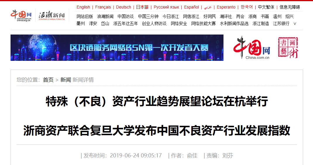 【中國網】特殊(不良)資產行業趨勢展望論壇在杭舉行 浙商資產聯合復旦大學發布中國不良資產行業發展指數